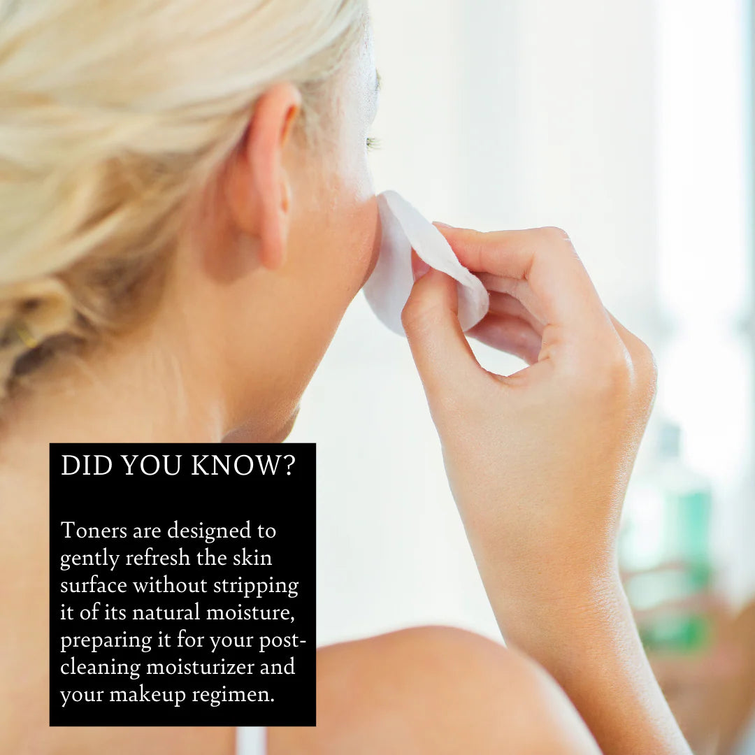 Apply Balancing Toner over your face and neck with a cotton pad as part of your skin care routine.