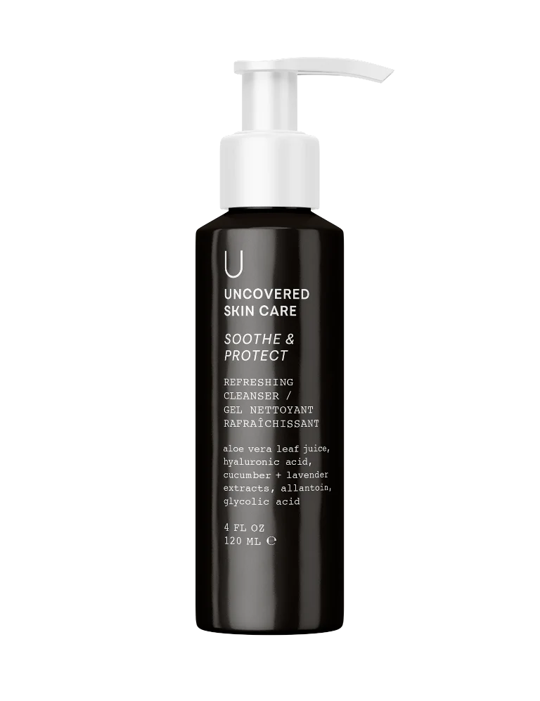 After wetting your face, massage one pump of Refreshing Cleanser over your face and neck, then rinse.